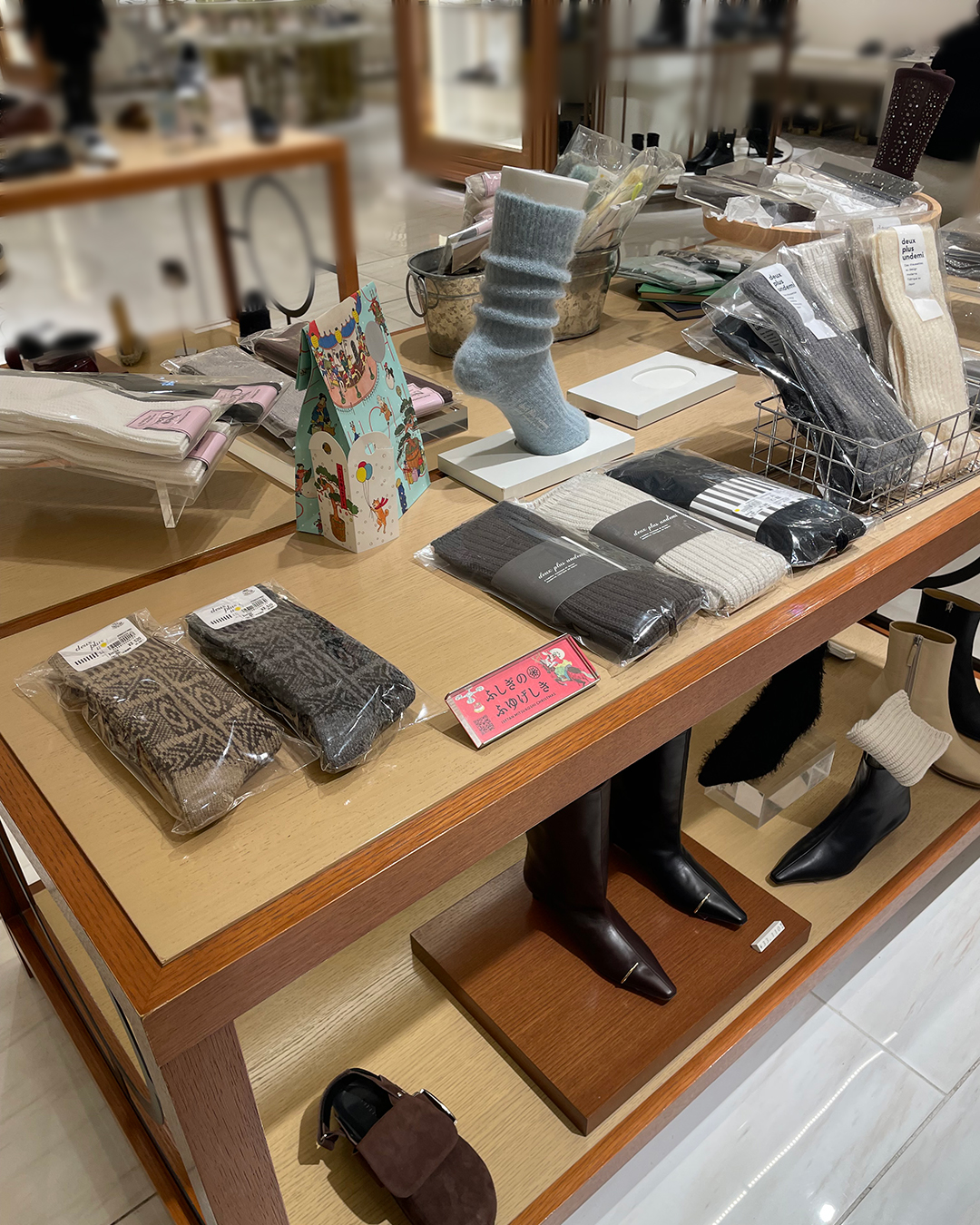 『伊勢丹新宿本館(2階)婦人靴・靴下』にて、 ”2025 Winter Socks Close UP” を開催しています。 deux plus undemiからもこれからのシーズンにおすすめのソックスをご紹介。 暖かさを重視したモヘアソックスやモコモコしたモール素材のもの、 またビジュー付きやラメなどクリスマスギフトにも最適なアイテムを揃えています。 ぜひこの機会に、お立寄りくださいませ。